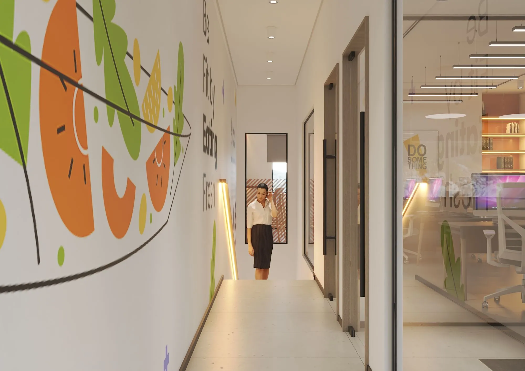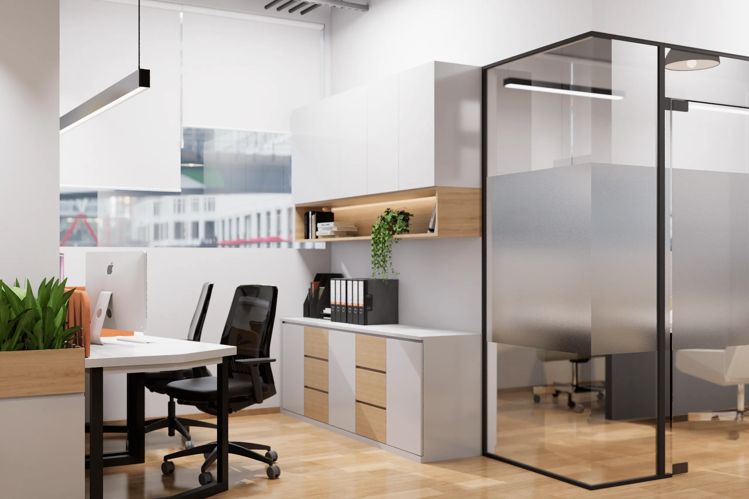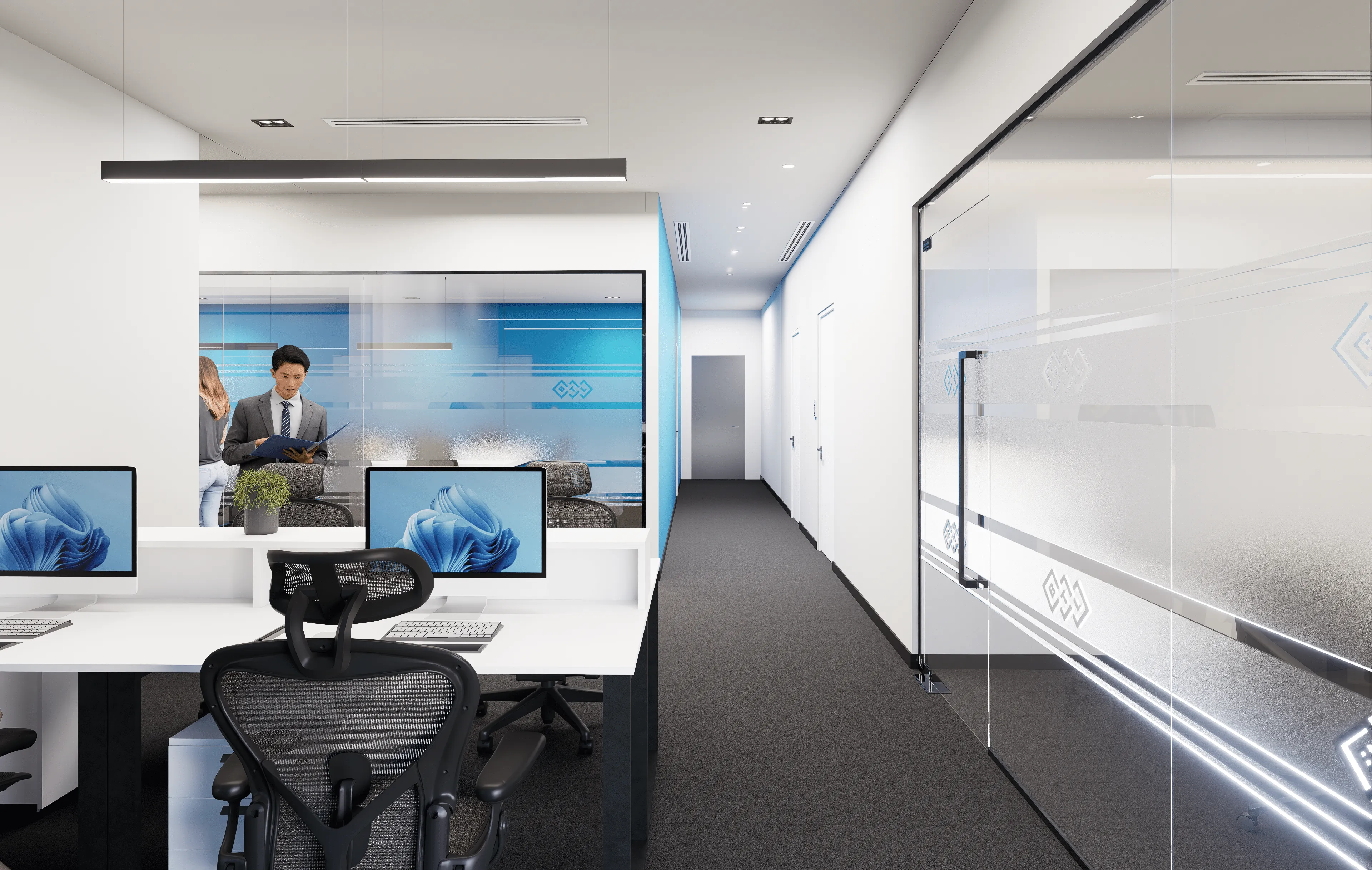 Modern workspace redesign focused on functionality, productivity, branding, and optimized layout for a professional business environment.
